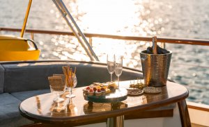 At the front of the boat, 8 guest can sunbathe at the same time or relax in the comfortable front seating group where you can have your drink or 5 o'clock tea at sunset. Gozdem The One Yacht Gulet is ready to welcome our guests that looking for a Luxury gulet arround Bodrum, Gocek, Marmaris, Fethiye, Datca, Kas.