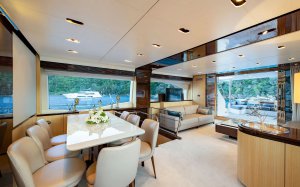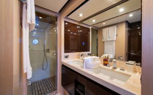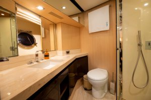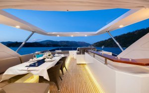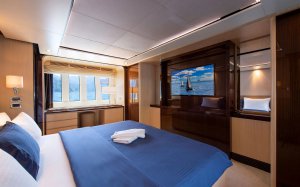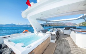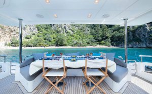 Whatever your activities on your charter, you'll find some impressive features are seamlessly integrated to help you, notably the underwater lights, adding spectacle and style after dark. Whether you want to work, use social media or stream movies on board this yacht, you can with Wi-Fi connectivity and you can stay comfortable on board whatever the weather, with air conditioning during your charter.